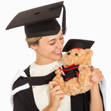 This cute graduation bear makes the perfect graduation gift or accompaniment to your graduation photo-shoot. Our super-soft and cuddly grad bears come dressed up with a tiny graduation hat and are holding a rolled-up graduation scroll. The teddy bears are a fun addition to your graduation gown and mortarboard or to a complete university graduation set.