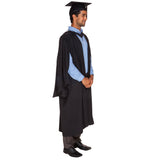 This set includes a black bachelor graduation gown, felt mortarboard and academic hood fully lined in royal blue satin. Suitable for use at ICHM bachelor graduation ceremonies.