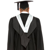 This set includes a black Cambridge-style graduation gown, black felt mortarboard (also called a graduation hat or trencher cap) with soft cup and elastic insert, and academic hood in the colour for your degree. Suitable for use at Macleay College graduation ceremonies.