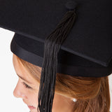 The graduation hat features a soft foam-lined cup and special internal elastic strap to ensure a secure and comfortable fit. It comes complete with a classic black satin tassel.